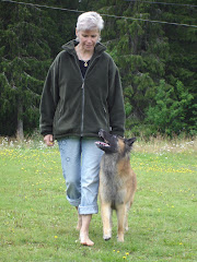 Nästa tillfälle var när jag var uppe i Ö-vik och sprang omkring på deras lydnads plan barfota och förevigades av Annika. Bilden blev sedan frontbild och även tryckt på en T-shirt av mina fantastiska "elever" vid kursavslutningen ( vilket ledde till ett litet "brake" ifrån min sida, inte varje dag man får veta att man är världs bäst).